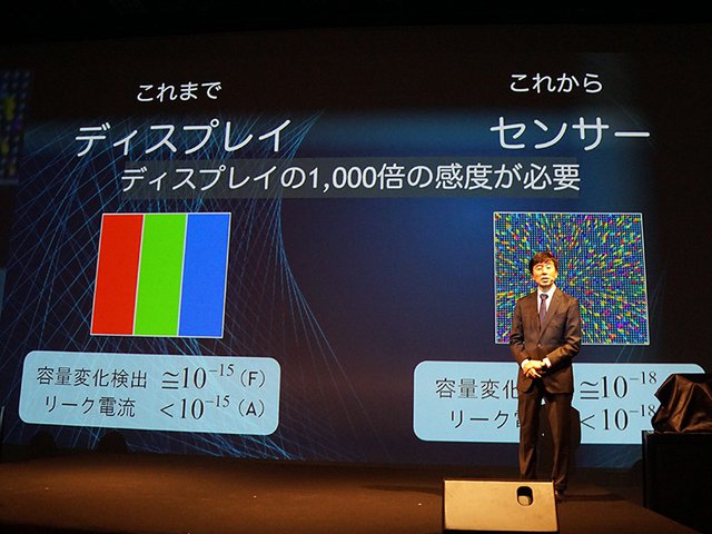 「実はディスプレイの製造技術とセンサーの技術とは親和性がある」と語るのは長岡氏。「TFTから微弱な電流を流して液晶電子やEL材料を動かすのがディスプレイ。一方、センサーは外で起きていることをなんらかの手段でTFTに伝えるものだからだ」と、その理由を説明する。