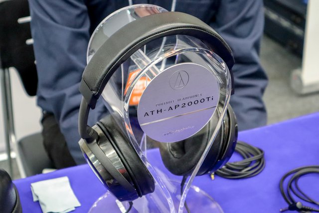 また同じくチタン素材をハウジングに用いたポータブルヘッドホン「ATH-AP2000Ti」(関連ニュース)も試聴できるようになっている。ハウジング表面には、傷を防ぎシックな色味を実現するイオンプレーティングが施されているほか、ヘッドバンド部のアームとスライダーにはマグネシウム合金を採用、強度と軽量化が追求されている。高い磁束密度が得られるパーメンジュールを採用した磁気回路と、DLCコーティング振動板、鉄芯ヨークなどを採用したΦ53mmドライバーを搭載する。