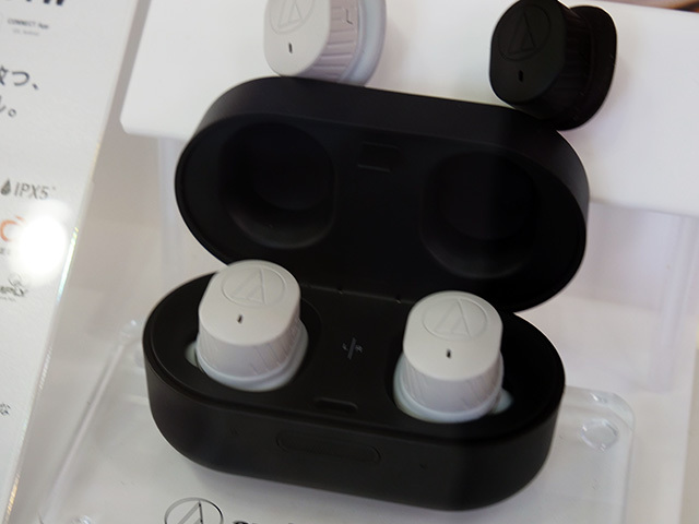1階ではワイヤレス製品を中心に展示。中でも大きな注目を集めていたのは、2つの完全ワイヤレスイヤホン「ATH-CKR7TW」と「ATH-SPORT7TW」だ。