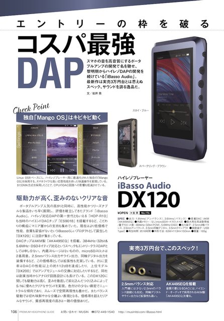 さらにさらに、オーディオテクニカから登場した “チタン” 素材を活用した密閉型ヘッドホン 「ATH-AP2000Ti」や、ソニーの最新ステージモニターイヤホン「IER-M9」、平面磁界駆動型イヤホンのRHA「CL2 Planar」など、贅を尽くしたプレミアムヘッドホンたちも徹底レビュー。ハイレゾ対応DAPでマニアからも人気を集めるiBasso Audioの最新モデルをはじめ、プレーヤーのご紹介も読み応えばっちりです。