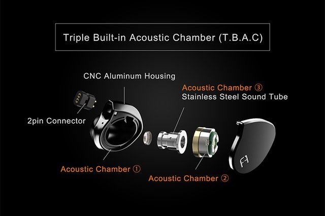 筐体内部には3つのアコースティックチャンバー(空気室)を搭載。内2つは、ハウジング容積を最適化し、イヤホン筐体内の空気の流れをコントロールすることで、ダイナミックドライバーの性能を引き出すとのこと。もう1つはサウンドチューブに採用されてろい、鼓膜へかかる空気圧を軽減し、低域の解像度向上を図っている。
