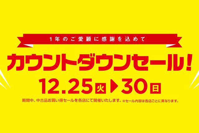 12月25日から12月30日は、「カウントダウンセール2018」を実施。中古品のお買い得セールが行われる。また12月31日には「ファイナルバーゲン2018」が行われるほか、時間限定のタイムセールも開催される。