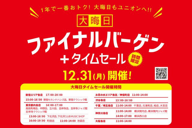 ディスクユニオンは、12月25日から1月6日にかけて、4つの年末年始セールを実施する。