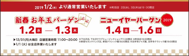新年は2日から営業し、1月3日まで「新春☆お年玉バーゲン2019」を開催。また1月4日から1月6日には、「ニューイヤーバーゲン2019」が行われる。