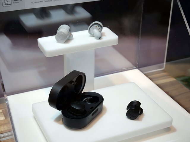 イヤホンでは、完全ワイヤレスイヤホン「ATH-CKR7TW」「ATH-SPORT7TW」の2機種をメインに展示。ただし完全ワイヤレスイヤホンの注目度は、日本ほど高くないようだった。