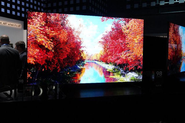 サムスンブースの入り口近くには、同社の8K液晶テレビ「QLED 8K」が配置された。サムスンは昨年秋から8Kテレビを発売済みだが、2019年には米国向けに98/88/75/65型の8Kテレビをラインナップしている。