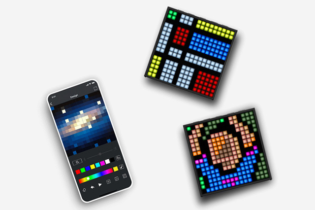 昨年発売のレトロテレビ風デザインモデル「Tivoo」(関連ニュース)と同等の256灯のRGB LEDにより、16×16のピクセルアートを表示できるBluetoothスピーカー。8色の基本カラーをベースとして、明度/彩度の異なる16万通りの色が表示できる。ピクセルアートはiOS/Android用アプリ「Divoom smart」によりオリジナルデザインが可能で、最大24コマのアニメーションとしても作成できる。