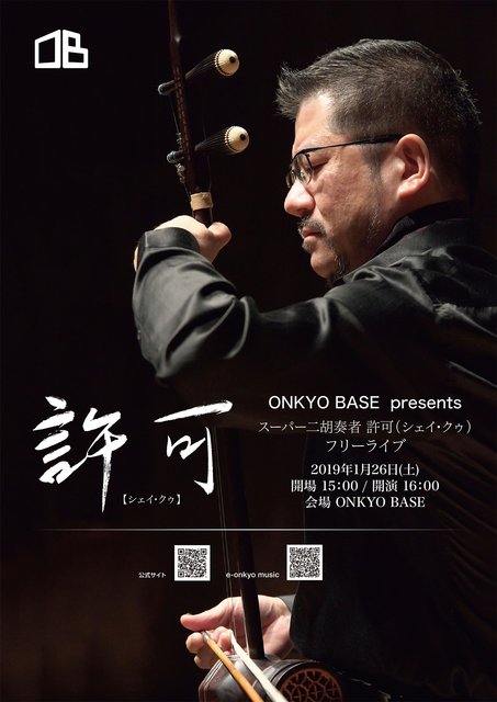 オンキヨーが東京・秋葉原に構えるショールーム「ONKYO BASE」では、二胡奏者、許 可(シュイ・クゥ)氏によるフリーライブを1月26日(土)に開催する。入場料は無料。