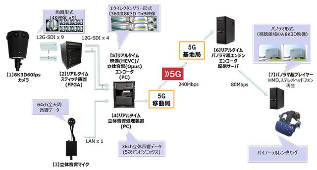 昨年2018年6月に同社が発表した「360度8KVRライブ映像配信・視聴システム」(関連ニュース)をさらに発展させ、映像の臨場感を向上させたもの。スポーツや音楽のライブイベントなどのリアルタイム配信への採用を想定しており、ヘッドマウントディスプレイを通してまるで会場にいるかのような臨場感、没入性の高いVRライブ体験を楽しめるとしている。