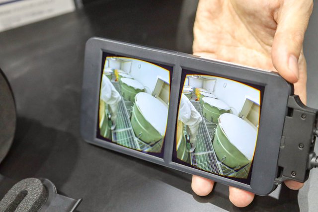 例えば製造工程の体験であれば工場見学の代わりに使え、3D CADであればクリエイティブ用途、風景であれば旅行する際の下見など、様々な使い方が予想されるとのこと。説明員によると、「ゲーム用のVRヘッドセットは大きくて重く、気軽に使えない。しかしスマートフォンをセットするVRヘッドセットでは、気軽に使えるが解像度が低く画質は良くない。だからその間を埋めるような製品を目指した」という。