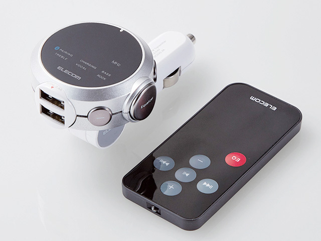 スマートフォン、タブレット、DAPなどからBluetoothで受信した音声をFMカーステレオで聴くための製品。BluetoothはVer.4.2に準拠、コーデックはSBCに対応。電源はシガーソケット(対応径20.8mm〜22mm)から供給する。