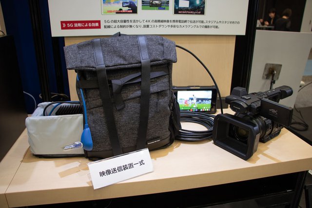 またパナソニックでは、5Gを用いて4K映像を配信できるシステムを展示。配信に必要なシステムはバックパックに収まる程度の大きさとなっており、また5Gを用いることで移動しても途切れにくい。