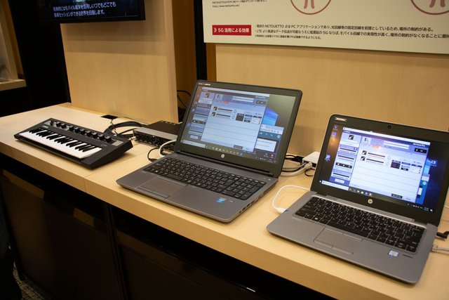 また遅延にフォーカスした展示として、ヤマハはオンライン上で複数人とリアルタイム合奏が行える「NETDUETTO」を展示。独自の圧縮技術によって低遅延の音声通信を可能にするという技術で、すでにPC向けにはデモソフトが配信済み。現在のPC用の光回線ではラグが少ないので問題なく動作しているというが、4G LTEではラグが大きく、モバイル端末では厳しいという。これを5Gの低遅延によって、「スマートフォンと楽器をつなぐだけで合奏ができたら理想」と説明員は話していた。