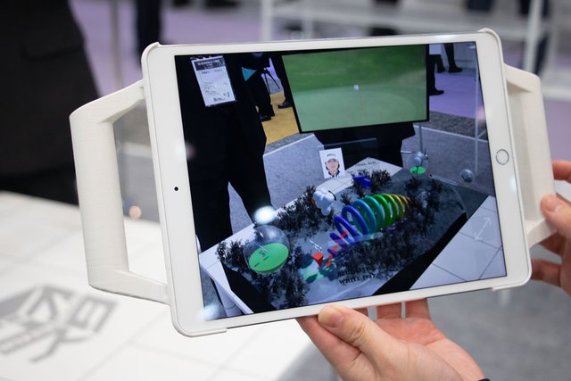 今回のデモは最新版ではなかったが、最新版では端末側での3Dレンダリングではなく、サーバーで処理し動画の形で配信することで、端末の負荷を減らしているという。これによってさらに通信量も増えてしまうので、5Gの特徴をすべて活用したサービスと説明員は話していた。なお、ほぼ実用化に近い状態に至っているという。