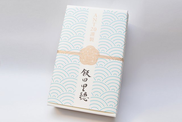 パッケージについても飯田氏による監修が行われており、デザインにはターコイズブルーの海をイメージし、日本古来の柄「青海波(せいかいは)」を採用。本人の直筆による書が描かれるほか、付属のメッセージカードにはシリアルナンバーも印字される。