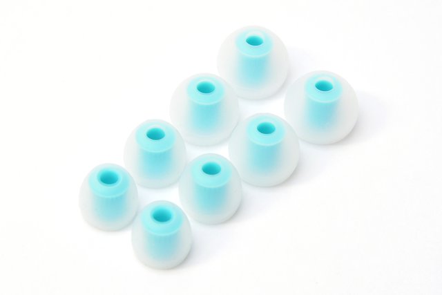 イヤーピースには、新たに開発された「ソフトタイプ」が5サイズ(SS/S/M/L/LL)付属。既発売の「Eタイプ」と比較して全体の硬度が低く設計されることで、フィット感を高めたとのこと。軸部分には飯田氏のイメージカラー “ターコイズブルー” を採用。また付属のキャリーケースも同様にターコイズブルーとなっている。