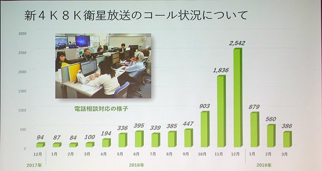 福田理事長は、「1月の会見(関連ニュース)の際に、新4K8K衛星放送は上々の滑り出しだと申し上げたが、その後の受信対応機器の出荷状況などを見ると少し足踏み状態にあり気を揉んでいる」とコメント。