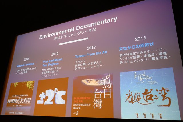 同社では2008年には人類と自然の調和のとれたバランスを提唱する「Natural Formosa」、2010年には台湾から見た気候変動を取り上げたドキュメンタリー「Plus and Minus Two Degrees」、2012年には台湾を上空から捉えた「Taiwan From the Air」、2013年には航空写真家チー・ポーリン氏による「天空からの招待状」と、10年以上にわたって環境に関係するドキュメンタリーを制作してきた。