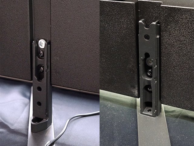 特徴的なのがスタンド部で、画面の高さを2段階から選択可能。サウンドバーを設置する場合には画面を高くするなどといったことができるようになっている。