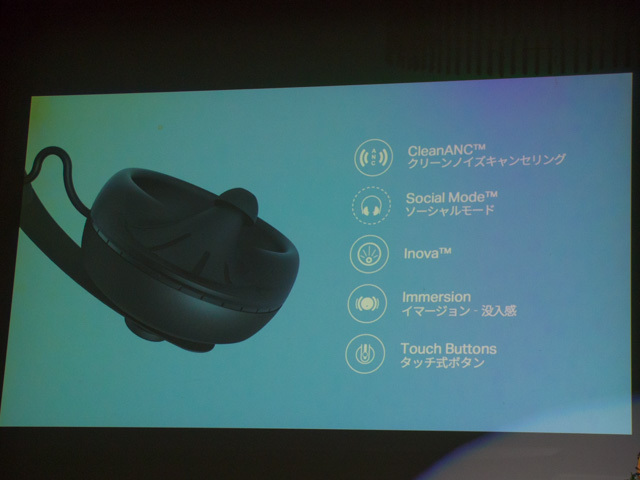 本製品のキャリブレーションは医療技術に基づいており、装着後は全自動で行われる。テスト音を耳にあてて生まれる微細な反射音をマイクで収集、独自の学習エンジンで解析し、ユーザーの耳の構造にあわせた音質調整がされる仕組み。野村氏は本技術について「ユーザーの感性や好みだけでなく、耳の構造自体の個人差にも着目してキャリブレーションを行う画期的なもの」と説明した。