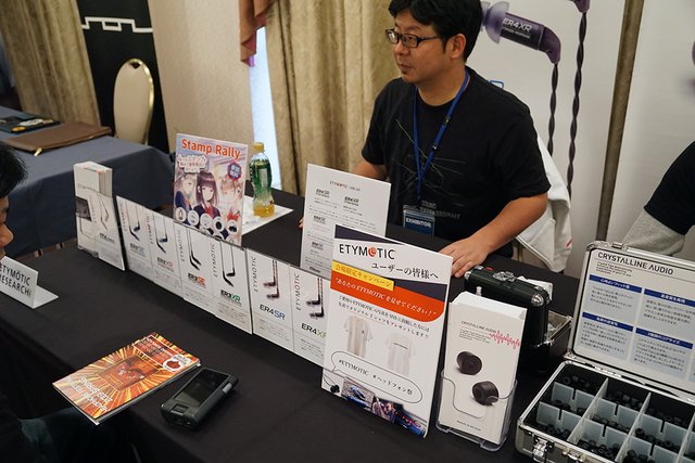 SHUREブランドは、5つのテーブルを使って大々的に展開。ヘッドホンやポータブルヘッドホンアンプ、イヤホン、Bluetoothケーブルなど、主要製品をほぼすべて並べて試せるようになっていた。