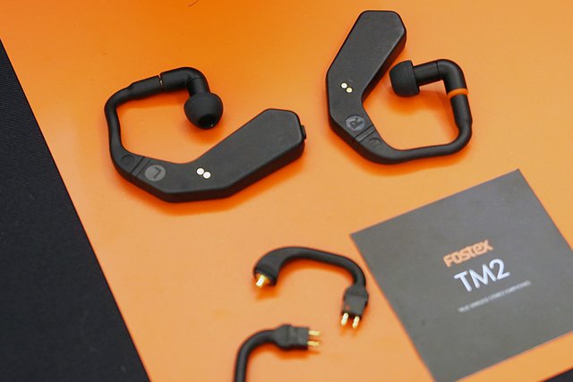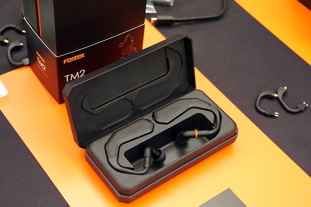 さらにFOSTEXの、新たな発想の完全ワイヤレスイヤホン「TM2」も展示されていた。MMCXを採用し、イヤホン部だけを交換することもできる耳掛け式イヤホンだ。つまり、ユーザーが所有しているMMCXイヤホンを「完全ワイヤレス化」することも可能。これまでにない画期的発想の商品だけに、注目度も高かった。
