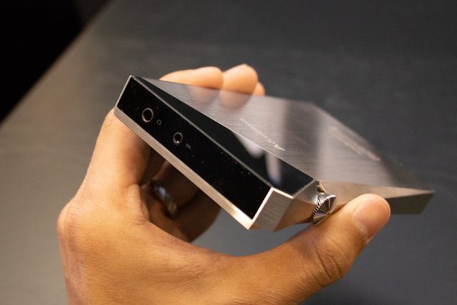 2.5mmバランス/3.5mmアンバランスのヘッドホン出力を備える点は同様だが、ヘッドホンアンプが大幅に強化。SP1000の出力がバランス 3.9Vrms/アンバランス 2.2Vrmsだったのに対して、SP2000の出力はバランス 6Vrms/アンバランス 3Vrmsとなった。なお、このヘッドホンアンプ強化を踏まえ、SP2000では外付けヘッドホンアンプを用意する予定はなく、底面部からアンプ用接続部が省略されている。