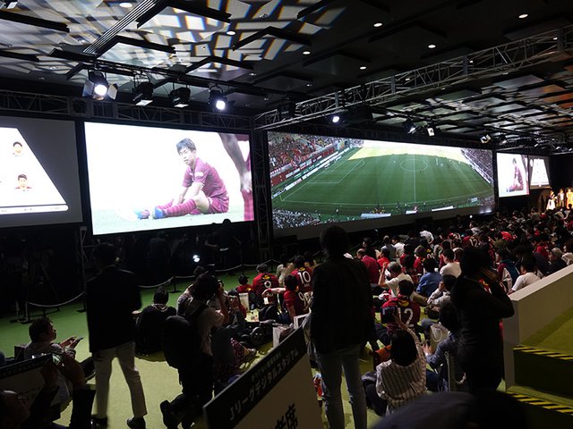 そして、イベント後に囲み取材に応えたJリーグ村井チェアマンは「サッカーの醍醐味である迫力や臨場感をスタジアムの外でもいかに提供できるかが課題だとかねてから思っており、今回はそれを非常に高いレベルで提供できたと思う」とコメント。「ボールのないところでの選手のかけひきなどテレビ中継では映らない部分を見られるのと同時に、(サブスクリーンの中継映像上映やスタッツ情報で)スタジアムにいると得られない情報も見られる『おいしいとこどり』な魅力を提供できたのではないか」と語った。