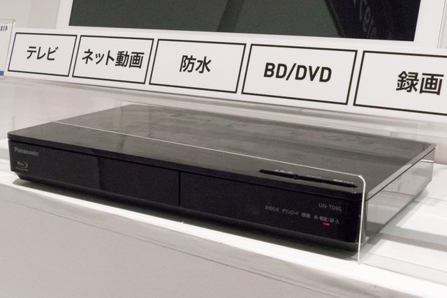 防水モデル最上位機種のUN-15TD9は、チューナー部に500GBのHDDとBDドライブを搭載し、HDDの外付けにも対応。地デジ/BS/CSチューナーを2系統ずつ搭載するため2番組同時録画が可能で、録画中番組を視聴することもできる。モニター部は4段階のチルト/フックへの引っ掛け設置に対応。内蔵バッテリーの連続使用可能時間は最長約3時間。