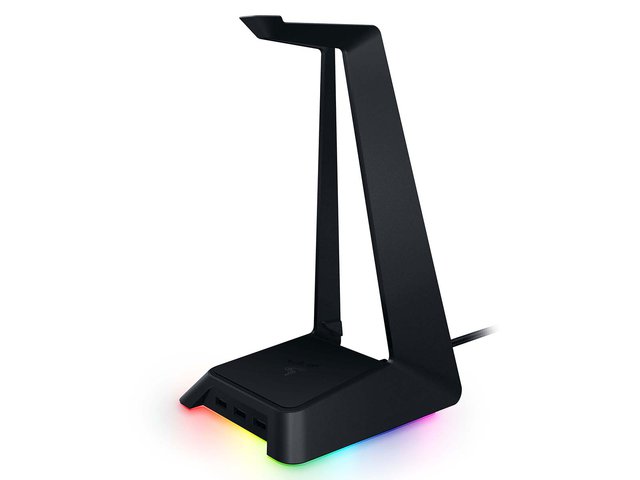 ヘッドホンやヘッドセットを置けることはもちろん、USB3.0ポートを3つ備えハブとしての使用も可能。底面には1,680万色のカラーオプションを持つイルミネーション機能「Razer Chroma」も備え、PC周りを彩ることができる。