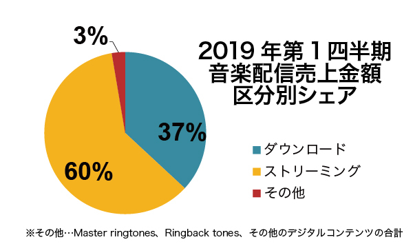 '19年1Qの音楽配信実績、ストリーミングが好調で前年比5%アップの168億に