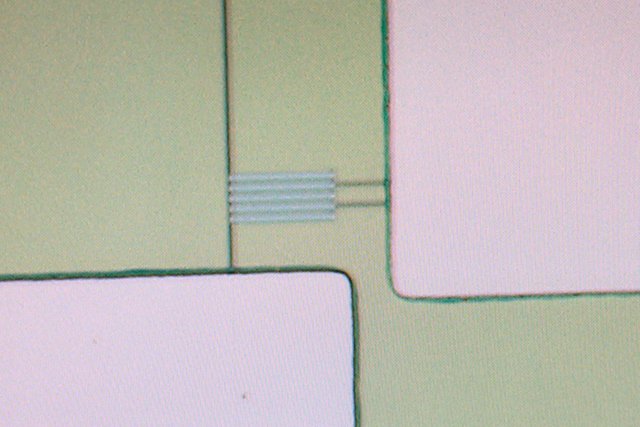 今回、微細な磁石を用いることで、電流によってON/OFF動作が行える「光変調素子(磁壁移動型光変調素子)」を設計・試作。短辺が1μmと小さいため電子顕微鏡を通して見ることになるが、実物も展示されていた。今後は、この技術を用いて、実際に表示させるデバイスを作ることが目標という。
