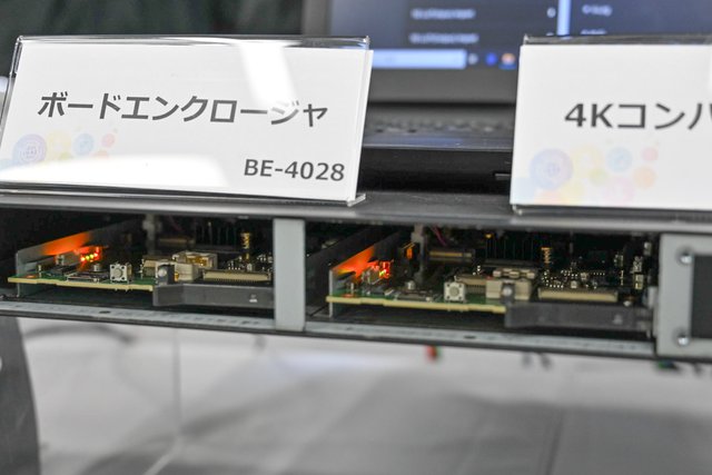 コンバーターでは、業務用製品となるが、4K対応のボード「SB-4027」が展示。4KとHDの双方向のコンバート、BT.2020とBT.709の双方向の色域変換、HDRとSDRの双方向のダイナミックレンジ変換を行うことができる。遅延は1フレームのため、ほぼリアルタイムとなっている。