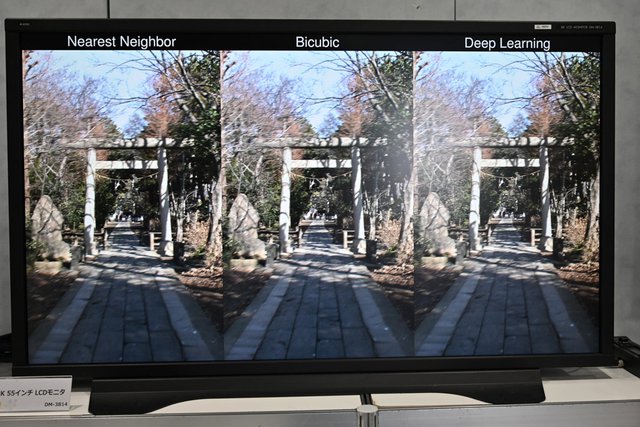 昨年のイベントで公開されたディープラーニングを用いて2K→8Kに変換する技術展示は、今年はより具体的になり、動画編集ソフト「DaVinci Resolve」などで利用可能なプラグインとして展開。開発中と案内されていたが、説明員によると今年中の発売を考えているとのこと。一般販売を想定しているというが、このようなかたちで同社がコンシューマー向けに販売することがなかったため、価格や販売形式などは検討中と話していた。