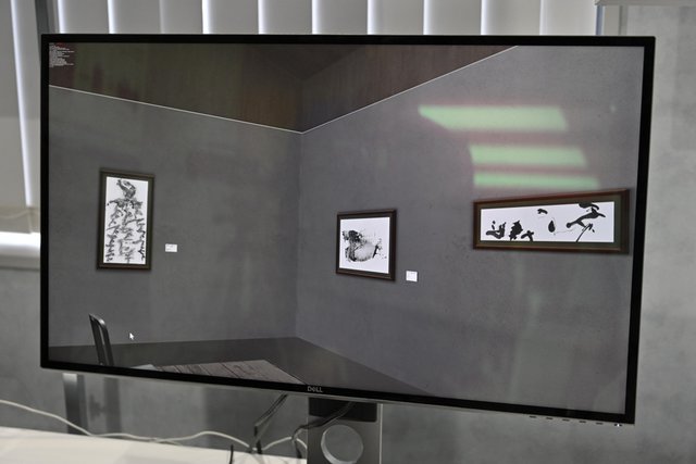 また8Kを用いた展示としては、CGを用いた「バーチャルミュージアム」がデモ展示。3Dの空間上に美術作品が展示されており、拡大、縮小など自由に鑑賞できるようになっていた。美術品などの記録では8Kを大幅に超えた、億単位の解像度が用いられることが多い。この空間上でもその解像度を活かし、近くに寄ることで細部まで見ることができる。デモでは書道作品が並んでおり、拡大することで筆で描かれたインクの細かなニュアンスまで感じ取れた。