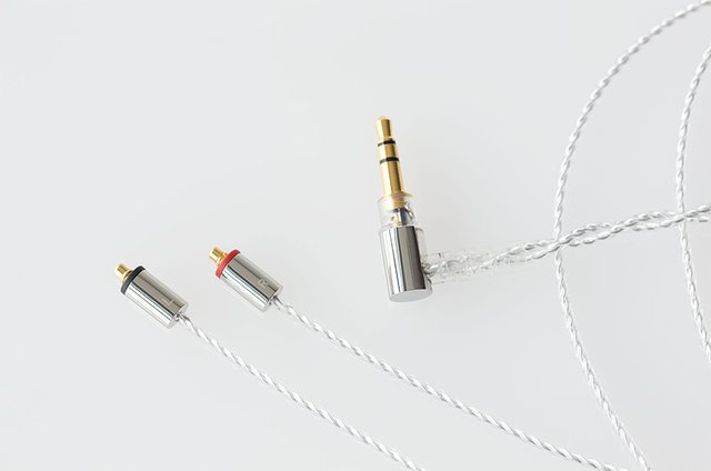 MMCXコネクターを備え、長さ1.2mのシルバーコートケーブルが付属する。そのほかにも、左右が分かりやすいよう色違いにされたオリジナルイヤーピース(5サイズ)とシリコン製キャリーケースも付属する。