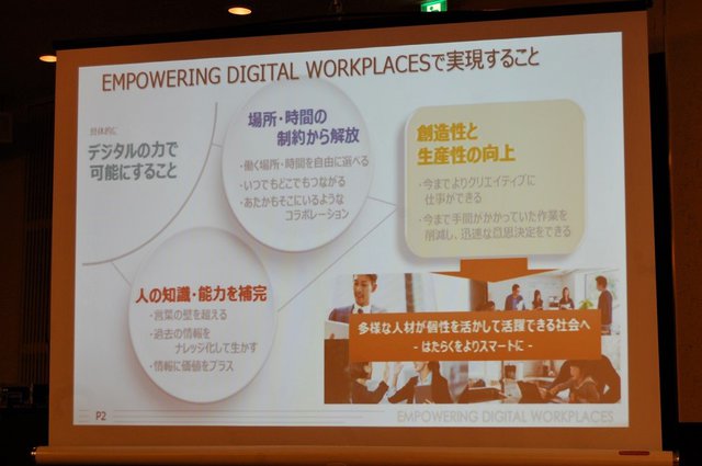 「EMPOWERING DIGITAL WORKPLACES」とは、働き方が多様化し、働く場所が拡がる中、物理的に離れて働く人をつなぐ空間のことで、同社が顧客に提供する新たな価値として位置づける。働く時間や場所の制約から解放し、言葉の壁を越えるなど人の知識と能力を補完することで、「これまでできなかったことができるようになり、見えなかったことが見えるようになり、より創造力豊かな仕事を可能にする。“はたらく”をよりスマートにしていきたい」(株式会社リコー常務執行役員・野水泰之氏)と新たな価値提供へ意気込む。