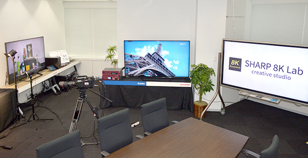 シャープは、 法人向け8Kソリューションを創出する核となる商談スペース「8K Labクリエイティブスタジオ」を、東京ビルにオープン。本日、そのメディア向け説明会が実施された。