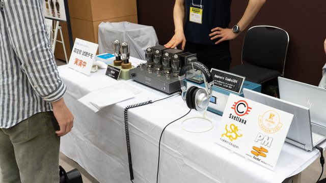 4階 G409には、真空管/インシュレーターなどのアクセサリーやヘッドホン/イヤホンを扱う複数のメーカーがブースを構え、多種多彩な出展を行っている。