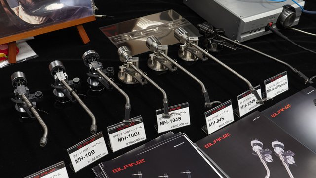 (株)ハマダは、同社が取り扱うGLANTZブランドのトーンアームを出展。アナログプレーヤーとヘッドホンの組み合わせにて試聴を行っている。各部にDLCコーティングを施した250万円のフラグシップモデル「MH-124S Premium」から、その技術を活かしつつ価格を39万円まで抑えた最新モデル「MH-10Bt/9Bt」まで、不要振動の抑制にこだわったモデルをラインナップしている。