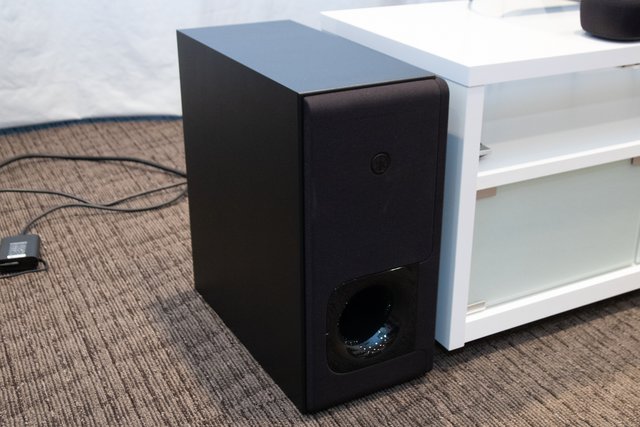 サウンドバー部(密閉型)のスピーカーユニットは、フルレンジ46mmコーン型ユニット(非防磁)を2基、25mmドーム型トゥイーター(防磁)を2基搭載。サブウーファー部(バスレフ型)には160mmコーン型ユニット(非防磁)を1基搭載する。ユニット口径およびスピーカー構成は従来モデルと同様だが、ユニット自体は全て刷新して音質をさらに追求したという。出力はL/Rスピーカーが50W×2、サブウーファーが100Wとなる。