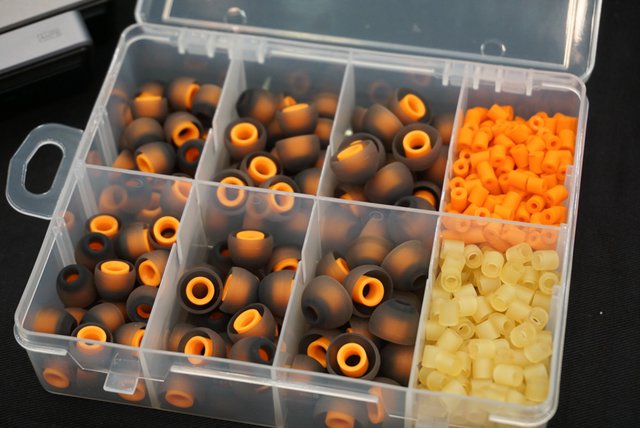 また6月から取扱が開始されたばかりのハンガリー製イヤーチップ「Symbio Eartips Tipe W」も注目されていた。シリコンとフォームを組み合わせたハイブリッドタイプのイヤーピースで、高いフィット感と遮音性が追求されている。これから発売予定という日本未発売のフォーム無しタイプ「Symbio W Peel」も用意。今後セット販売される予定のノズル変換アダプターも用意され、来場者の多種多様なイヤホンでも試聴できるようになっていた。