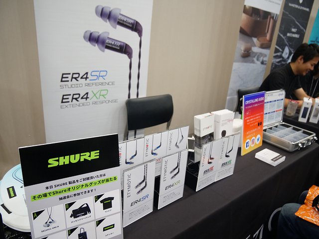 また、SHUREブランドもフルラインナップを展示。SEシリーズのイヤホンはもちろん、コンデンサー型イヤホンのKSEシリーズも出展。実際のサウンドを聴くことができた。