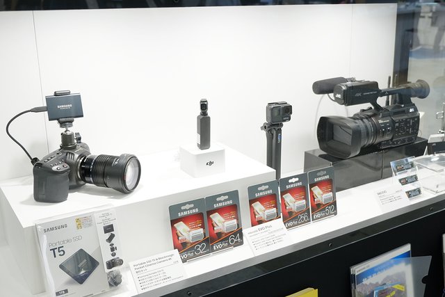 アストロデザインは8Kの映像作成・編集といった制作フローに関連した各種技術を出展。8K素材の一部を2Kないし4Kで切り出すことのできるシステムのコンセプト展示などを実施した。一方で、ブラックマジックデザインなど多数のメーカーが共同展示を行うブースには、ブラックマジックデザイン「Pocket Cinema Camera 4K」やDJI「OSMO POCKET」、GoPro「HERO 7」、JVC「CONNECTED CAM」など軽いフットワークで高画質を撮影できる機材についても展示が行われ、来場者の注目を集めていた。
