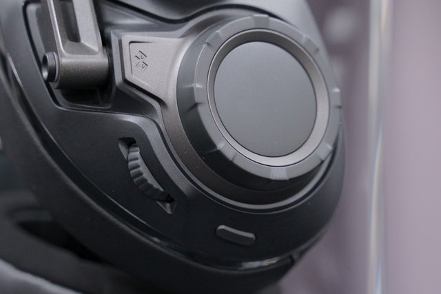 右ハウジングには2種類のダイアルを搭載。大きなダイアルではメインボリューム、小さなダイアルではボイスチャットのボリュームを調整可能。右ハウジング下には「スマートボタン」を備え、ソフトウェアで好みの機能を割り当てることができる。