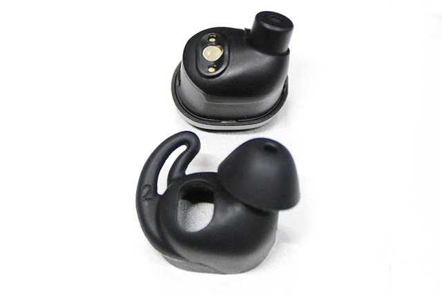 VISTAのイヤージェルは新素材を採用。イヤホン全体を覆うため、耳に触れる部分はイヤージェルのみとなり、プラスチックの硬い部分は触れないような設計としたことで高いフィット感を得られるという。