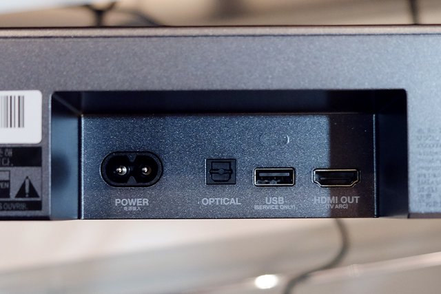 HDMI端子はARC対応。なお、米国向けモデルはUSB端子経由の音楽再生も可能だが、日本向けなどその他の国用モデルではUSB端子はサービス用端子としてのみの利用となる。