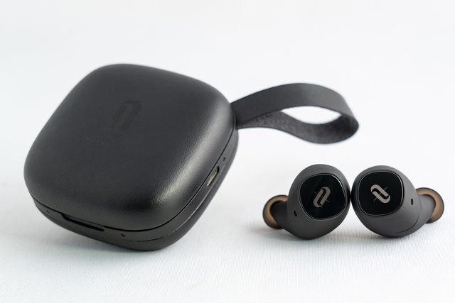 ケースはレザー調の外装として質感を高め、フタの開閉と連動してイヤホンのペアリングが開始する自動ペアリング設計を採用。また、充電方式は従来のUSB充電にくわえ、新たにワイヤレス充電Qiに対応している。