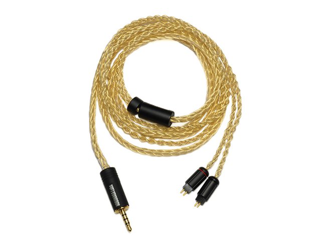 4N純銀線に金メッキコートをかけた8芯編みケーブル。4月にMMCXモデルを発売していたが、新たにカスタム2ピンタイプがラインナップに加わった格好。なお、本モデルは一部専門店のみの取り扱いとなり、e☆イヤホン、フジヤエービックなどで販売される。