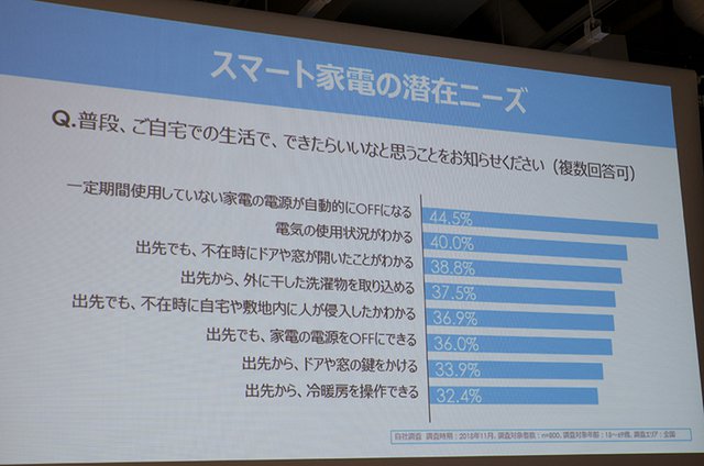 「日本市場におけるスマート家電の所有率は、全世代通して5%に満たない。アメリカではスマートスピーカーの所有率が30%ほどになっていることを考えると、日本ではまだまだ。でも市場はこれから伸びると考えている」と語る近藤氏。